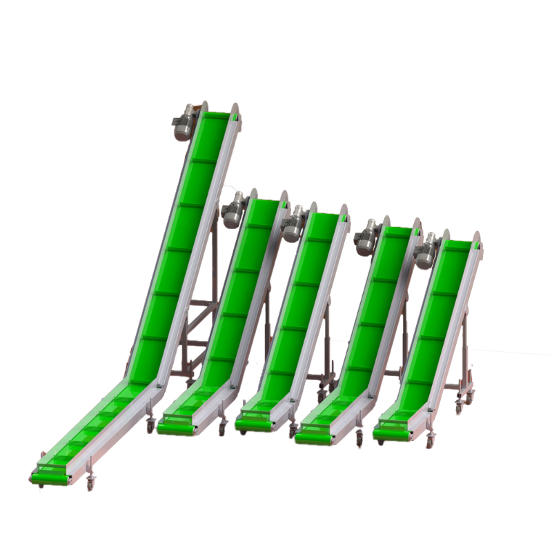 Esteiras de transporte para elevação, para transportes de rebarbar e transportes de frascos com volumes maiores, elevando os produtos para a altura desejada, como moinho.